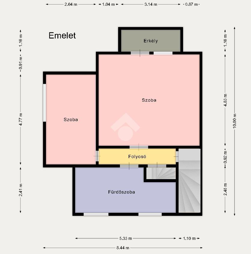 A tetőtér beépítésnek köszönhetően van egy plusz szobánk, ami szabadidős tevékenységre és lakószobának egyaránt igénybe vehető.