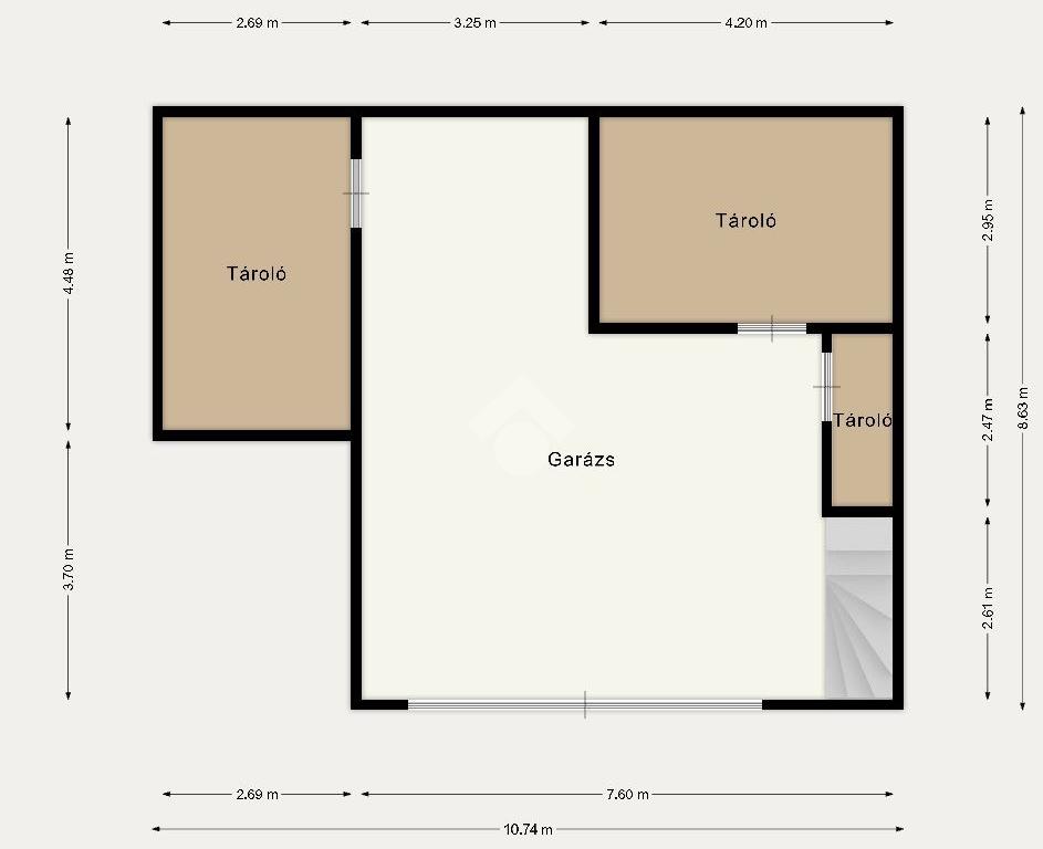Az alagsort a házon belül lépcsőn, illetve az utcafront felől a garázskapun keresztül is megközelíthetjük. Itt 1 autóbeállót és további kettő helyiséget találunk, egy mosókonyhát, illetve egy tárolót, ahol a lakás gépészete kapott helyet. A lakás melegéről cirkó gondoskodik.