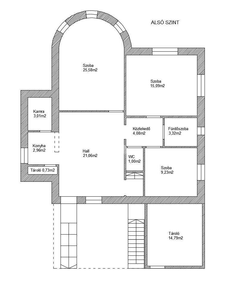 Az épület öt különálló szobát, két hallt, két konyhát, két fürdőszobát és több mellékhelyiséget foglal magába.