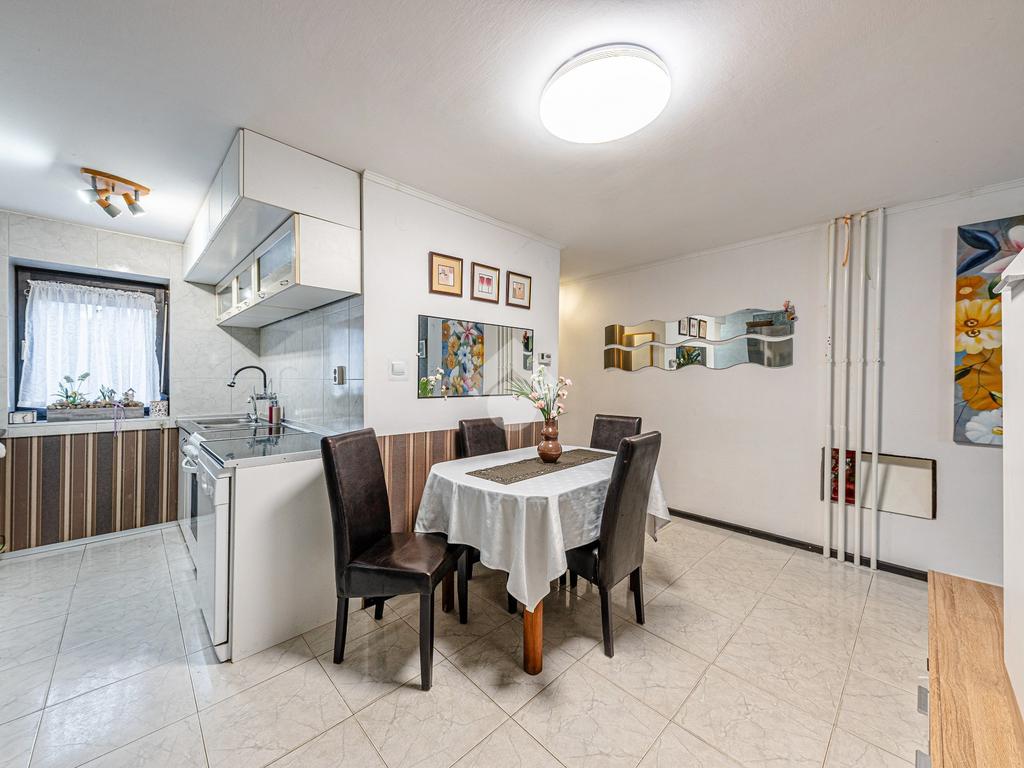 Eladásra kínálunk egy sorházi ingatlant, amely kiváló választás családok számára. Az ingatlan tulajdoni lap szerint 96 m², a valóságban azonban kb. 140–150 m² hasznos alapterülettel rendelkezik. A hozzá tartozó 200 m²-es gondozott kert kellemes kikapcsolódást biztosít.