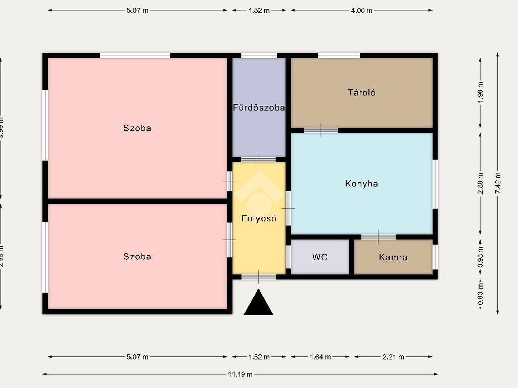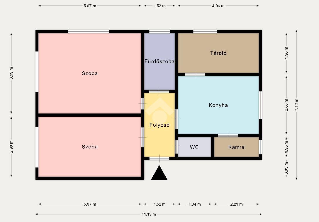 A lakás rendkívül világos, konyhája tágas ablakos helyiség, fürdőszobája kádas, lakáson belül kamra áll rendelkezésre a tárolásra.