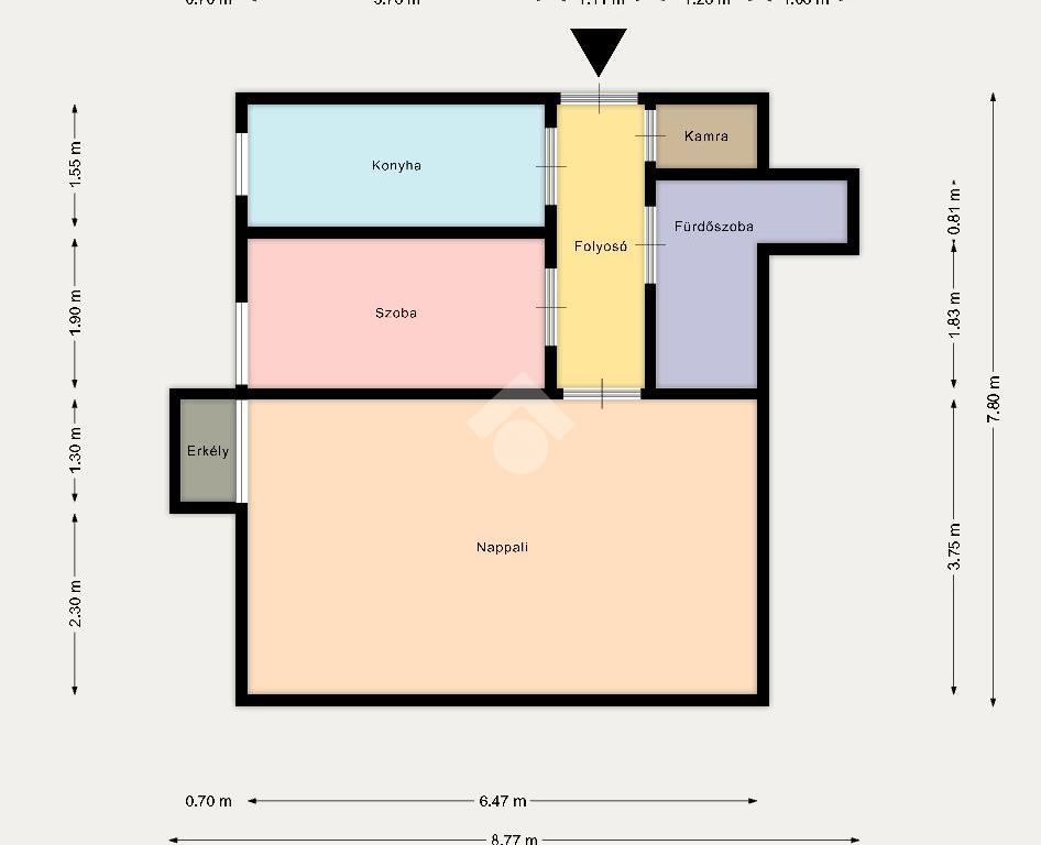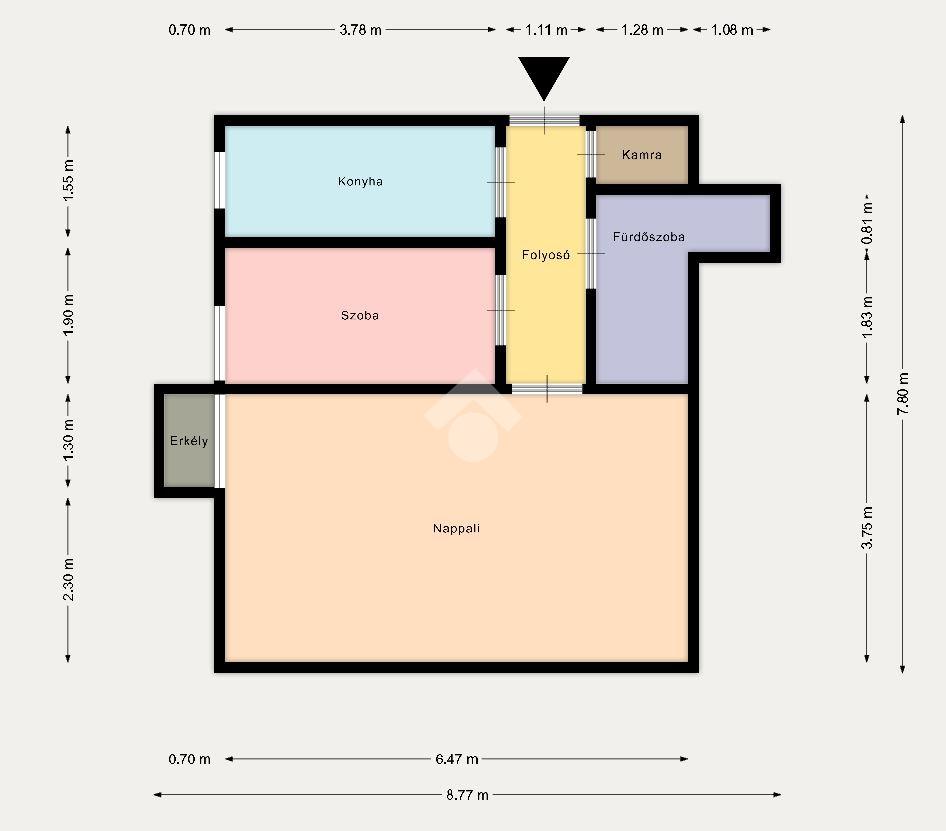 Tárolásra kamra, valamint egy saját, 7 NM-es tároló áll rendelkezésre.